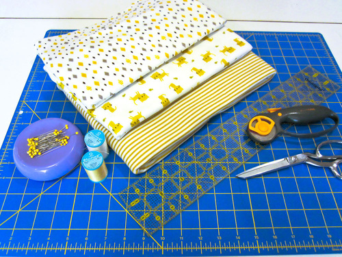 - 2 yards of ONE additional coordinating 44”+ wide cotton knit for all the narrow panels on the front and all the wide panels on the back; we originally used Narrow Stripe in Citron and White, a 100% Organic Cotton Knit from Cloud9 Fabrics