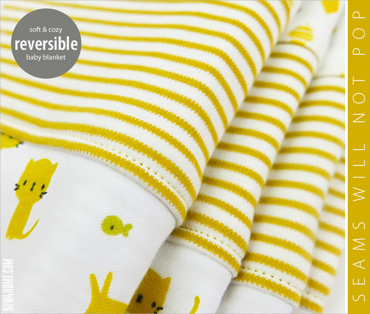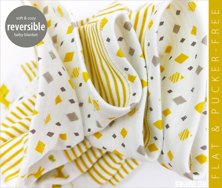 - Hem the top and bottom edges of the blanket to match the sides, creating a simple square overlap in each corner. We used a scrap of layered knit as a starting block to help even the foot at the corners.
