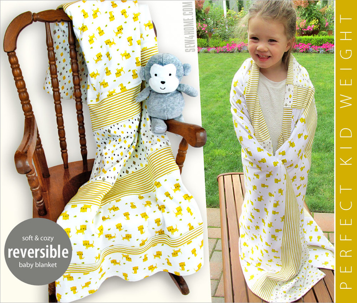 By layering together the front and back panels, our baby blanket is completely reversible and has a surprisingly nice weight to it. Sometimes, knit blankets can be almost too lightweight. This double-layer version is softer and heavier, which is a comforting feel for babies and young children.