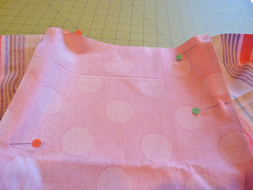 - Pin in place across the bottom raw edges.