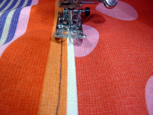 NOTE: For all the apron topstitching, we used the same purple accent thread as we did for our flat felled seams.