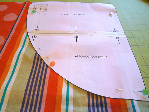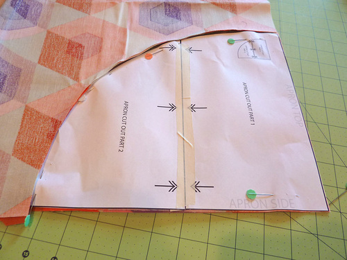- Place the sewn apron front right side up and flat on your work surface.