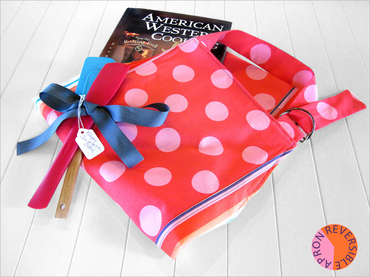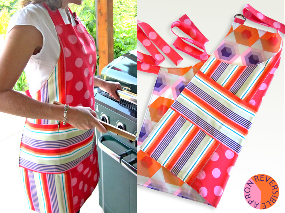 I think more things in life should be reversible. Having a string of bad luck? Flip it over, and win the lottery. Say something stupid to your best friend? Turn it inside out, and it never happened. Wake up to gray and rainy day for your family picnic? Reverse it to blue skies and sunshine. Sounds good, don’t you think? Although I can’t promise these awesome life swaps, I can guarantee you’ll love this reversible apron.