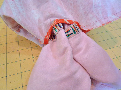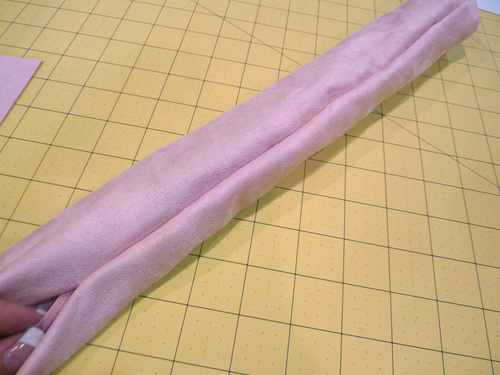 - Turn right side out and finger press flat so the seam is along the bottom and the folded edge is along the top.