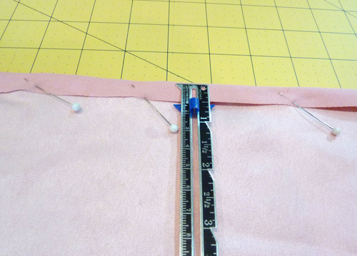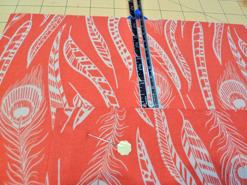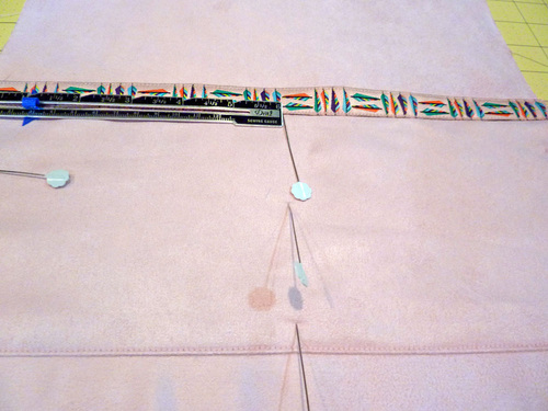 - Find the center of the pocket panel and mark a vertical line using pins or your fabric pen/pencil.