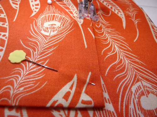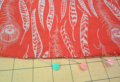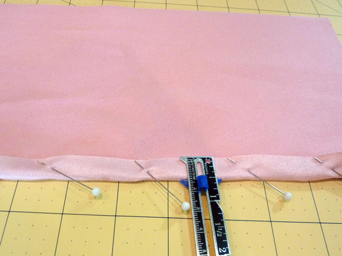 - Fold back the bottom raw edge ½”, hiding the raw edge to the back and creating a clean folded edge along the bottom. Pin in place.
