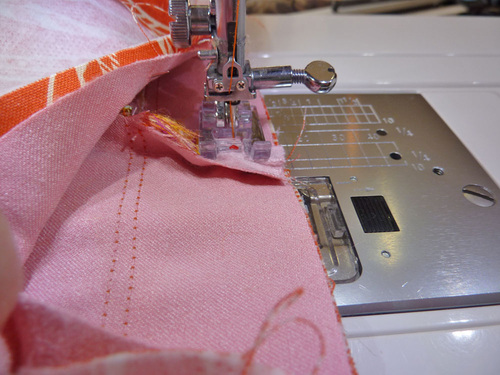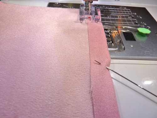 - Pull out the bottom of the lining. You can either edgestitch the opening closed or hand stitch it closed. We chose to simply pin and edgestitch closed by machine.