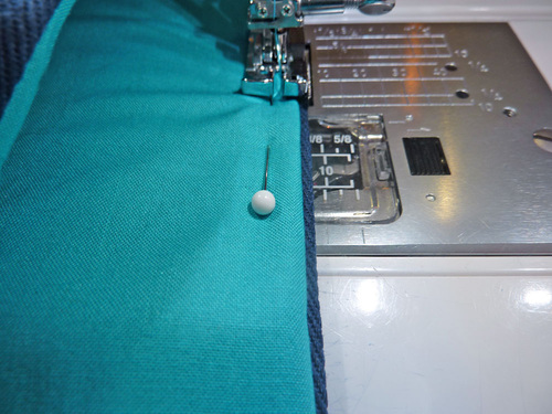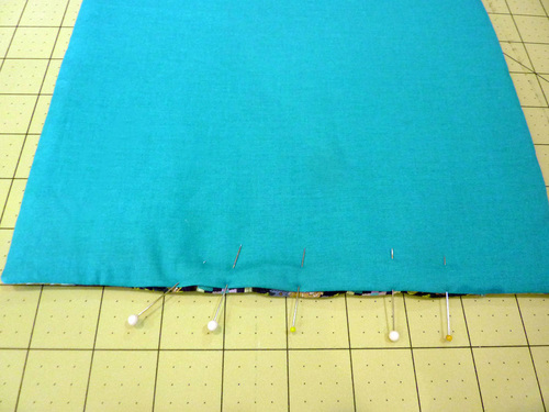- Pin in place along both sides and across the bottom. Leave an approximate 3″ opening along the bottom for turning.