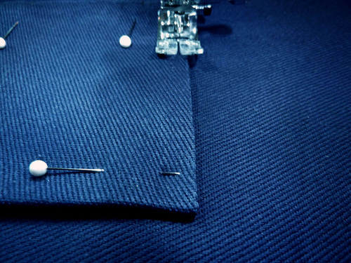 - Fold down the top raw edge ½” all around to form a finished top edge. Press well then lightly pin to hold in place.