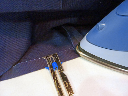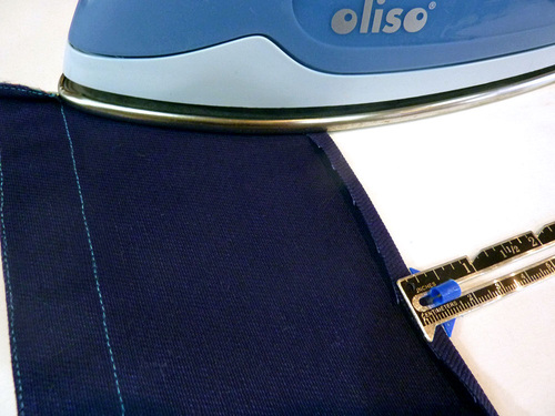 - Press the flap from both the front and back. This firm pressing activates the fusible interfacing between the layers, creating a firm, smooth bond.