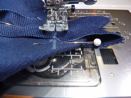 - Place the bag back side up (pocket side up) on your work surface. Fold the top front of the bag out of the way. You can do this because of that 2½” open seam allowance.