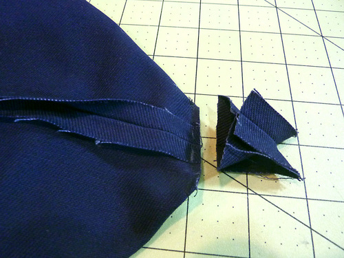 - As above with the lining, box the bottom of the exterior to create 2″ corners.