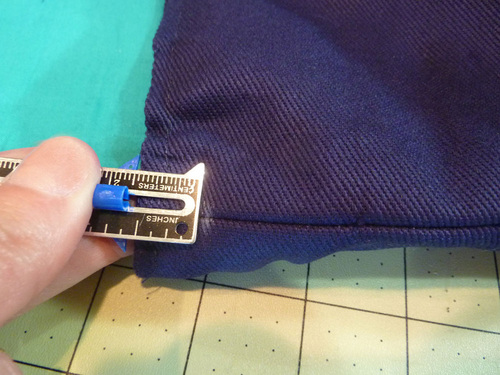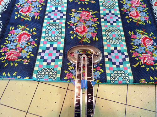 - Measure ¼” down from the top seamed edge at each side seam. This is where the top edge of the grommet should hit at each side. Mark for each grommet hole.