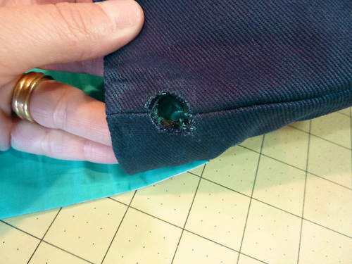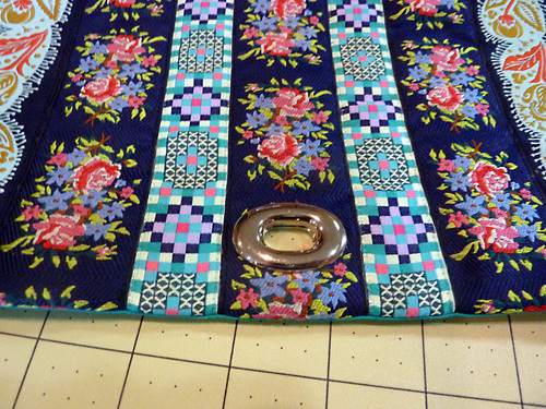 - Following the manufacturer’s instruction or our own Sew4Home How To Install Metal Grommets tutorial, insert each grommet.