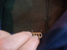 - Following manufacturer’s instructions, insert the clasp’s frame through all the layers.