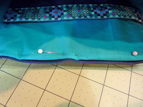 - As you did with the lining, fold down the top raw edge ½” all around to form a finished top edge. Press well then lightly pin to hold in place.