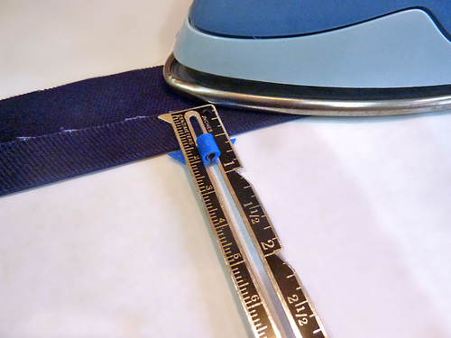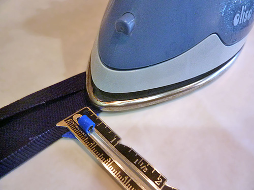 - Lap the ¼” folded edge over the ½” folded edge and press flat, forming a ⅝” wide strap (with an off-set overlap) that is finished on all sides.