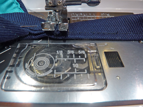 - If necessary, re-thread the machine with thread to match the lining and the exterior bag. We stitched with the lining facing up and so used thread to match the lining in the top and the exterior in the bobbin. Edgestitch all around the top, through all the layers.