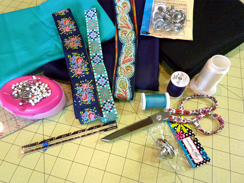 - ½ yard of 44″+ wide coordinating denim or similar for the bag exterior; we used navy denim