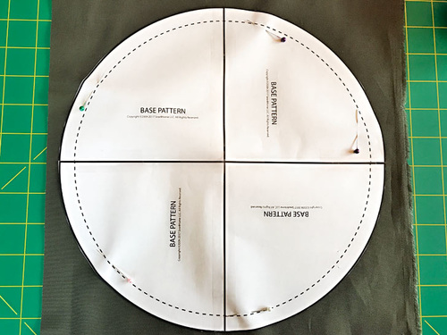- Assemble the four base quarters into a circle, following the drawing on the pattern sheet itself. Butt together the pieces (do not overlap) and tape to create your full circle pattern.
