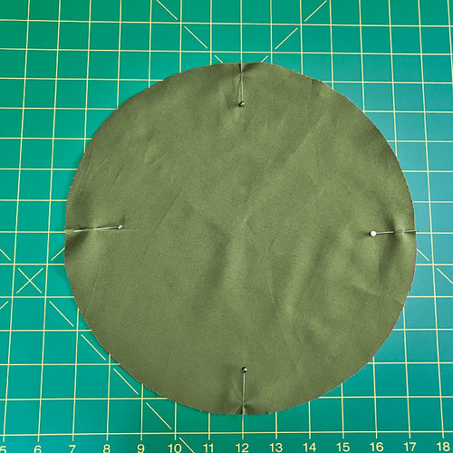 - The base panel is sewn in place following the same method you used above to create the lining. As we recommended, if you are new to this technique, check out our full step-by-step tutorial. First find the quarter points of the base circle, like the four points on the face of a clock.