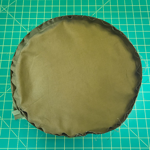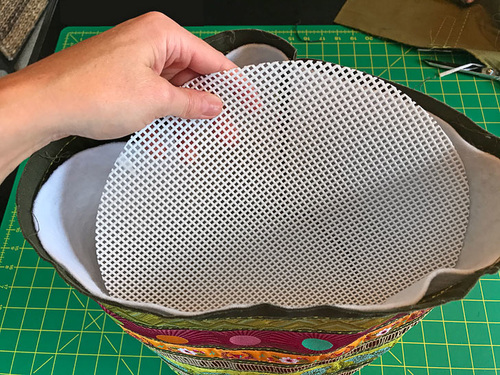 - Find the lining base panel. It is sewn in place following the traditional method of inserting a flat base into a tube. If you are new to this type of technique, check out our full step-by-step tutorial.