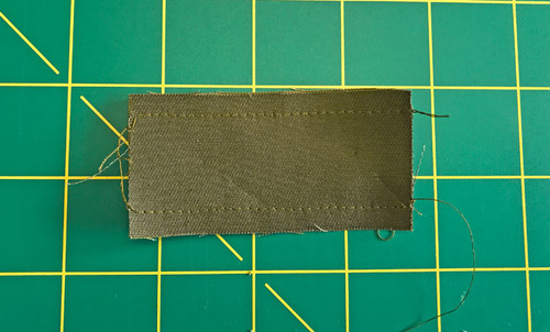 - Edgestitch once all around ⅛” from the bottom seam within the loop panel. Go slowly and carefully to insure you are catching the back folded edge evenly all the way around.