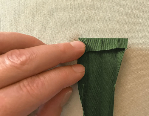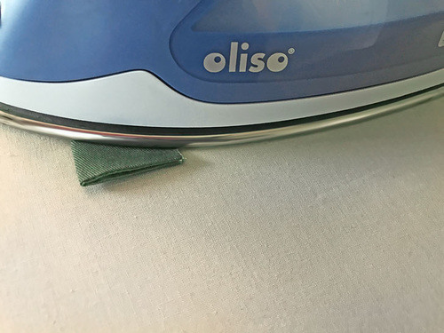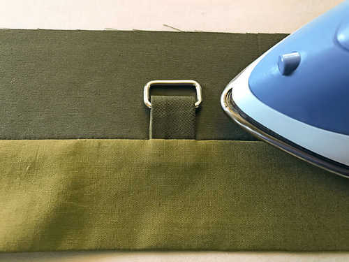 - Bring the loop up into position, pressing the seam allowance up toward the loop panel. Press well all around so the seam is nice and sharp.