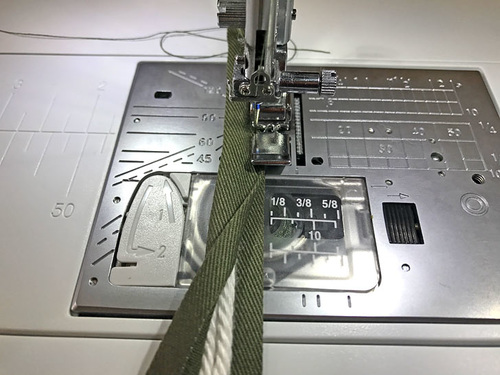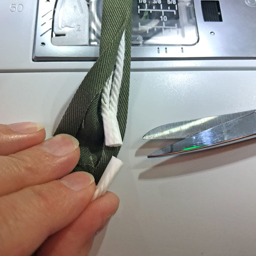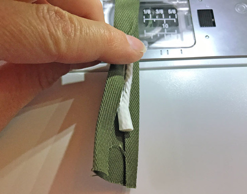 - Stitch down the double-fold edges, running the seam as close to the cording as possible.