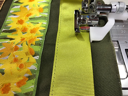 - Edgestitch the ribbon in place along both long sides.
