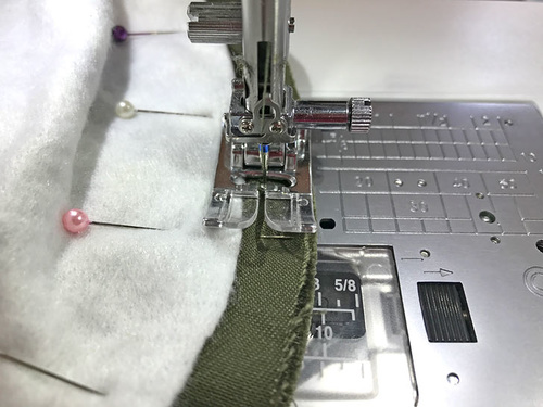 - Remember, in the larger ⅝” space, use two lines of stitching.