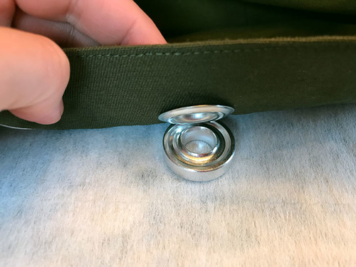 - Repeat to set all twelve grommets. If you are brand new to working with grommets, you can check out our full tutorial on How to Insert Metal Grommets.