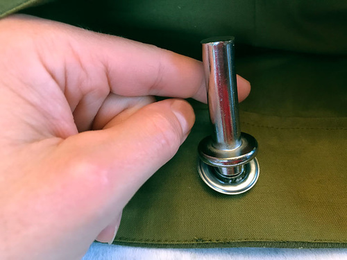 - Insert the rivet top from the front through to the back.