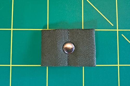 - Find the little 4” x 2½” strip and one rivet.