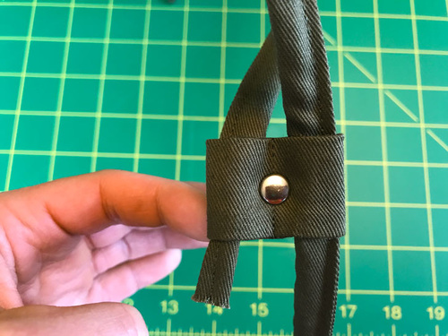 NOTE: The steps for riveting are really quite easy, but if you’re brand new to the technique, you can certainly review our general tutorial on How to Install Metal Rivets. - Feed each end of the drawcord through one side of the slider.
