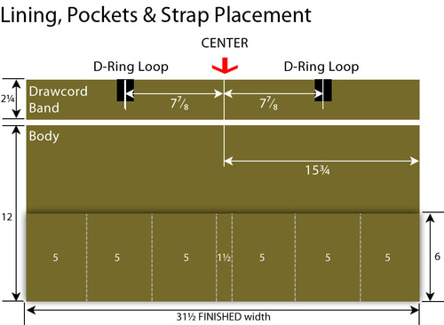 - The drawing below shows you our measuring diagram. As always, you’re welcome to adjust the number of pockets and the pocket widths to best fit what you wish to carry.