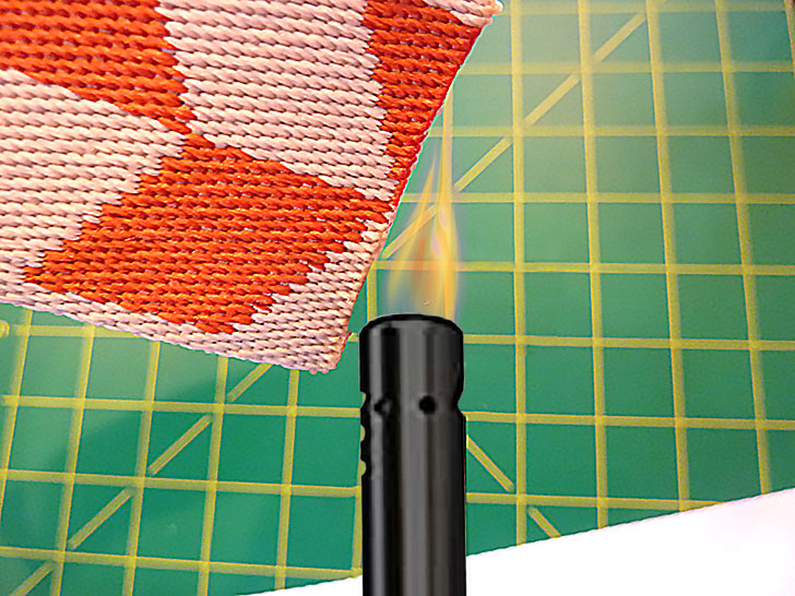 - As mentioned above, we are recommending polyester webbing not only for its water-resistant capabilities, but also because the cut ends can be finished and sealed by carefully melting with a lighter or match. With the thicker layers that occur when making an adjustable loop, you certainly don’t need to add any extra bulk with a hem to finish ends! Just pass the cut ends through a small flame a couple times; it doesn’t take much to melt and seal.