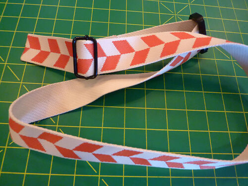 - Wrap the finished adjustable strap around the tote, fitting it across the back of the tote and adjusting the slider as need be.