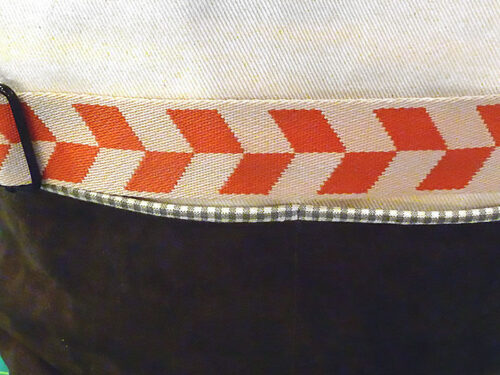 - 1⅓ yards of 1½” – 2” wide polyester webbing; click for our sources for the black and white webbing and/or the orange and tan webbing