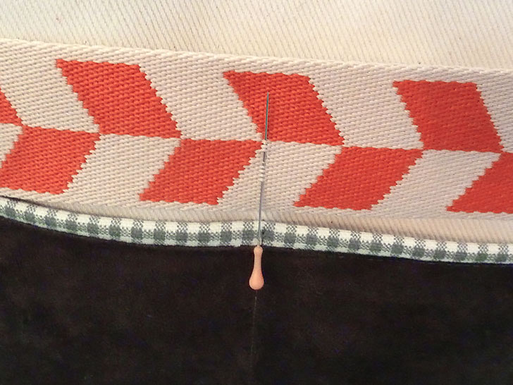 - Stitch the end in place through all the layers. We recommend stitching across twice or even three times for a strong seam.