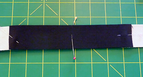 - Find your length of elastic. Fold it in half to find its center point and mark this point with a pin.