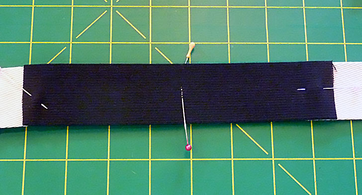 - Place the elastic on top of the belt, aligning the two center pin points.