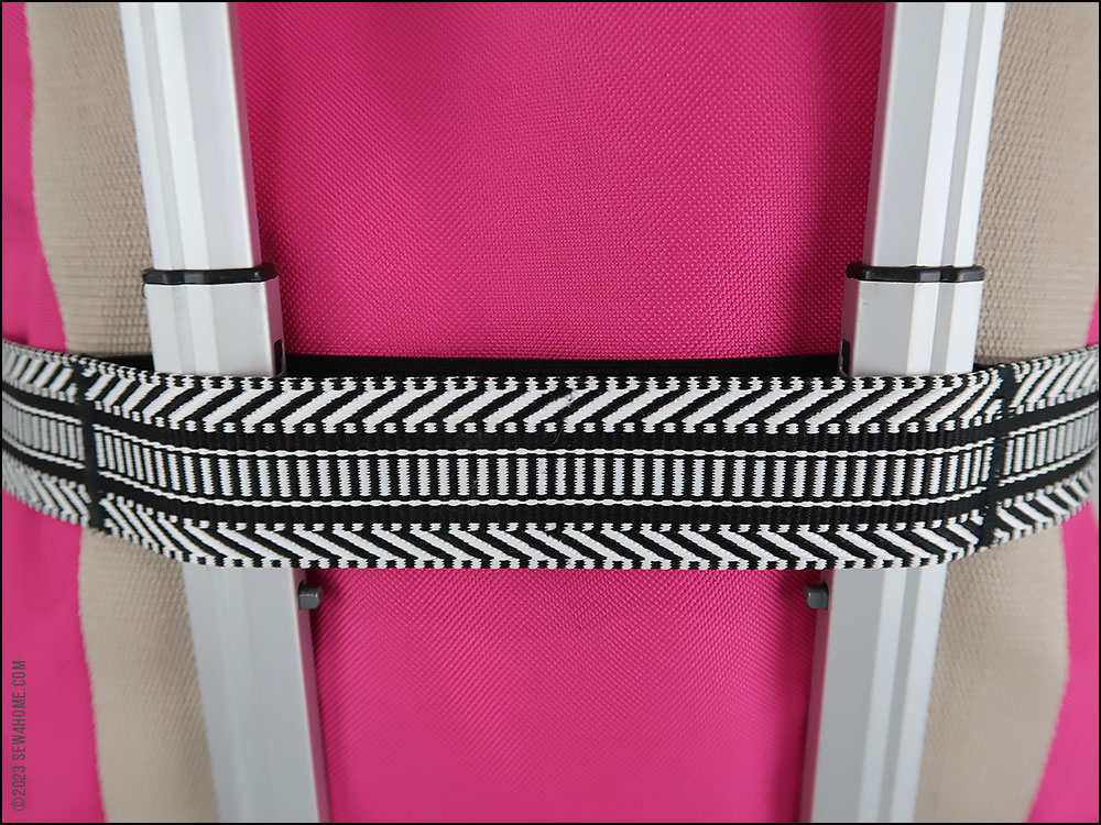 NOTE: As mentioned above, the 7½” length of elastic we specified above is based on the 6” width of our rolling case handle. This is a pretty common width, but if the handle on your case is a lot narrower or wider, you may want to adjust the length of the elastic. The length we chose allowed just a bit of give, allowing the belt to easily slip over the handle into position. It needn’t be a super tight fit.