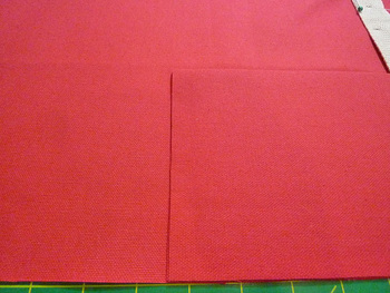 - Place the pocket base panel right side up on the exterior panel. The pocket should be centered side to side and the bottom raw edges of the folded pocket should be flush with the bottom raw edge of the main panel.