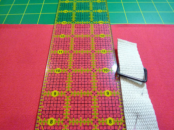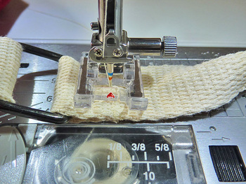 - There should be 5½” between the lengths of webbing. Make sure this distance remains consistent from the bottom raw edge all the way up to the 10½” point.