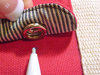 - Slip the Triangle Ring tab over the raw point. The point should insert down between the layers about ½” – ⅝”. Pin in place.