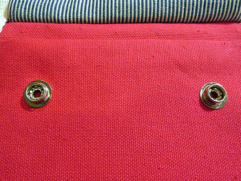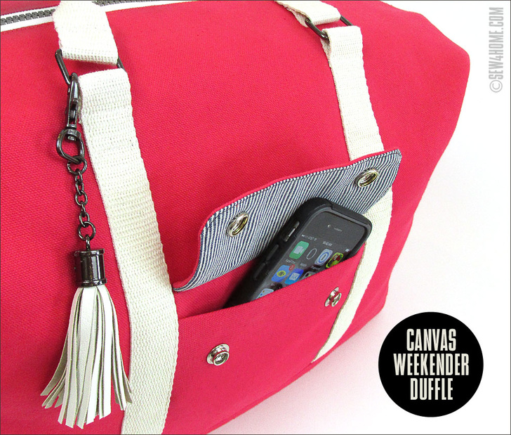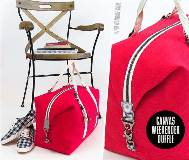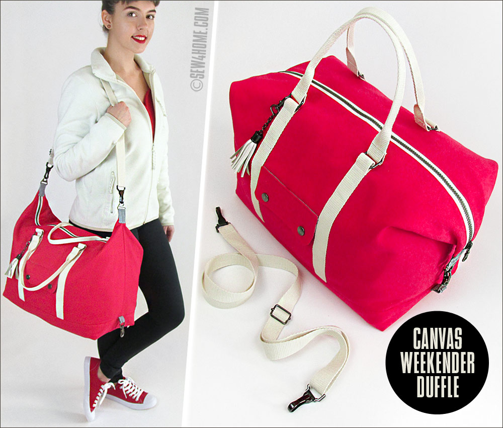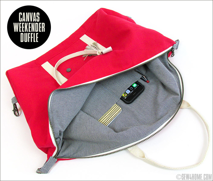Tough canvas is ideal for the exterior fabric; and a bright color, like the cherry red we chose, is a welcome change from the blacks and browns of so many travel bags. We paired the exterior canvas with a railroad stripe denim for the lining. Fusible fleece is what gives the bag additional structure without compromising its flexibility. The bag can fold flat for easy storage.