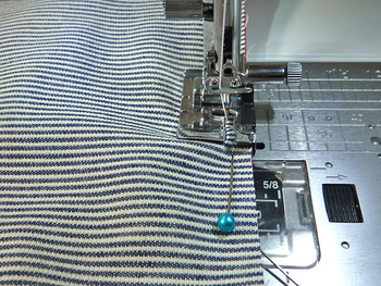 - Re-thread the machine with thread to best match the exterior fabric in the top and bobbin. Re-set the stitch length to normal.