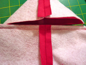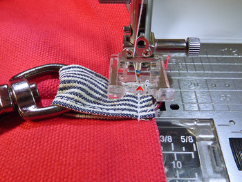 - The swivel hook is sandwiched between the layers at the side seam allowances.