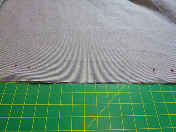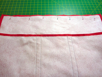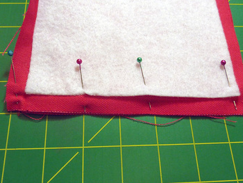 - Pin all the way across the bottom of the exterior panels, then stitch across using a ½” seam allowance.